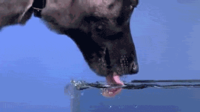 يشرب الكلب المياة عن طريق دفعها بلسانه للخلف وليس الأمام.
