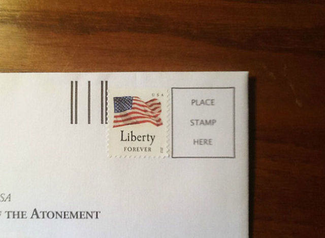 يوجد مكان محدد لوضع الطوابع، لكن الموظف المهمل والمتعجل قام بلصق الطابع بجوار المكان المخصص له.